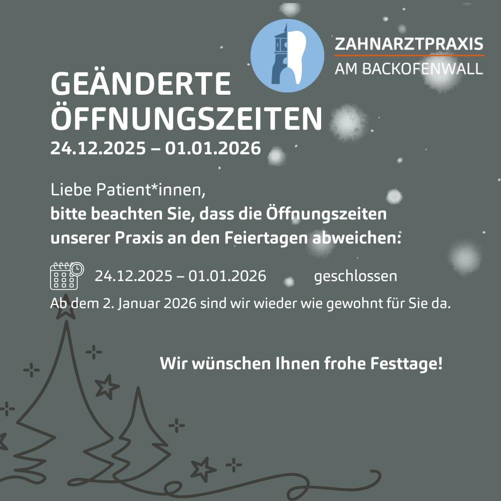 In der Zahnarztpraxis am Backofenwall MVZ GmbH stehen unsere Patientinnen und Patienten im Mittelpunkt unserer Tätigkeit. Wir gewährleisten eine optimale zahnmedizinische Behandlung über mehrere Generationen hinweg und gehen auf individuelle Wünsche und Anliegen unserer Patienten ein. Unser Leistungsangebot spiegelt die Vielfältigkeit unserer Praxis wider und lässt keine Wünsche offen.